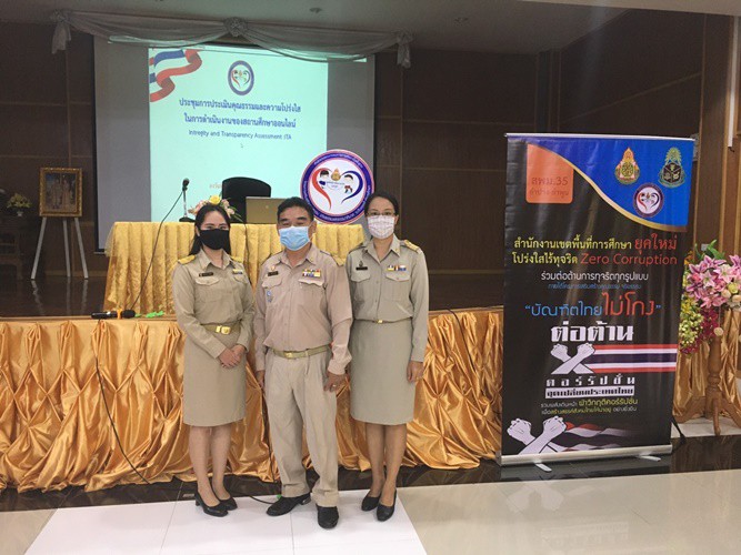 วันที่ 13 กรกฎาคม 2563 ดร.ประจักษ์ สีหราช ผู้อำนวยการเขตพื้นที่การศึกษามัธยมศึกษาเขต 35 ประธานในพิธีเปิด ประชุมการประเมินคุณธรรมและความโปร่งใสในการดำเนินงานของสถานศึกษาออนไลน์ Intregity and Transparency Assessment : ITA เพื่อแจ้งนโยบายและแนวทางปฏิบัติ ณ สำนักงานเขตพื้นที่การศึกษามัธยมศึกษาเขต 35 ห้องประชุมบรรเจิง