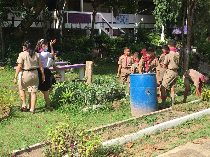 วันที่ 20 สิงหาคม 2563 นักเรียนลูกเสือ เนตรนารี ร่วมกับคณะครู ทำจิตอาสาพัฒนาโรงเรียน กำจัดแหล่งเพาะพันธ์ยุงลาย ป้องกันปัญหา ตัดวงจร การแพร่ขยายพันธ์ยุงลาย เพื่อให้ทุกคนห่างไกลและปลอดภัยจากโรคไข้เลือดออก |