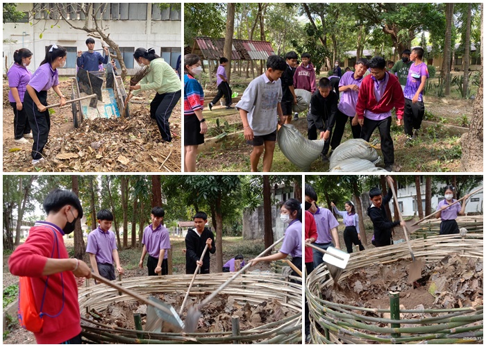 นักเรียนโรงเรียนไหล่หินวิทยาร่วมกิจกรรมทำปุ๋ยอินทรีย์จากใบไม้ตามโครงการพัฒนาเกษตร(เศรษฐกิจพอเพียง)