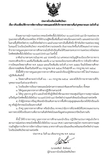 ปรับเปลี่ยนวิธีการการจัดการเรียนการสอนและงดให้บริการอาคารสถานที่แก่บุคคลภายนอก (ฉบับที่ ๒)