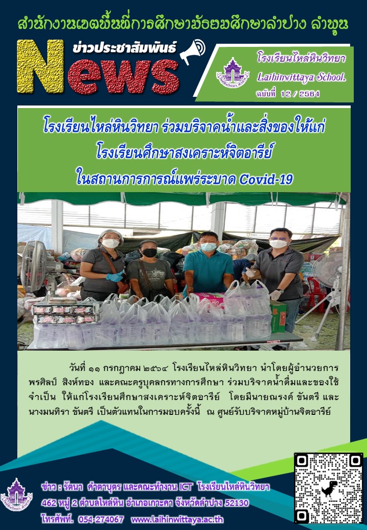 โรงเรียนไหล่หินวิทยา ร่วมบริจาคน้ำและของใช้จำเป็น แก่โรงเรียนศึกษาสงเคราะห์จิตอารี