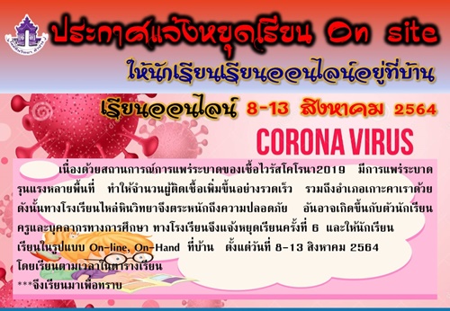 ประชาสัมพันธ์แจ้งหยุดเรียน On site เนื่องจากสถานการณ์โควิด19 ครั้งที่ 6