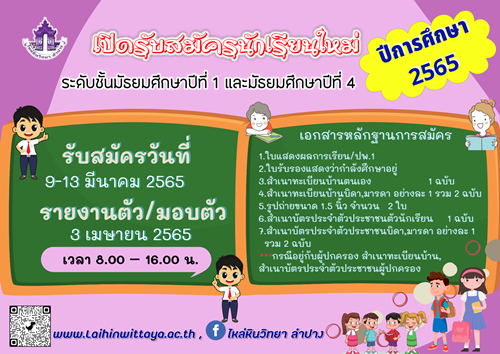 โรงเรียนไหล่หินวิทยาเปิดรับสมัครนักเรียนใหม่ปีการศึกษา 2565